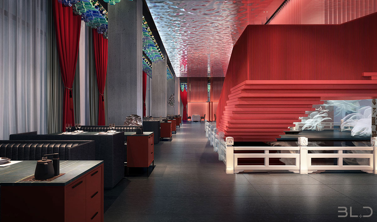 花家怡園(北京順義新國展新址),整體空間設計以“花”為主題,串聯多種中式元素輔助陳設品牌概念。花在設計元素中,更像武俠小說中的《洗髓經》,唯有高手方能將其駕馭。花概念在設計師伽馬恰到好處的分寸感下,演化 成對歲月與中式美學的致敬。在設計風格上,傳承感、現代感、功能感,構成堅不可摧的審美黃金三角。被多次強調使用的鏡面折射,帶來虛實兩重空間。設計配色啟用中國紅、玄天白、以及墨黑,營造三度視覺沖擊。設計師伽馬先生在設計中,擺脫傳統中式空間的窠 臼,隔絕傳統餐飲的喧囂,攜簡約清朗的設計語言,書寫了花家怡園的新氣質。